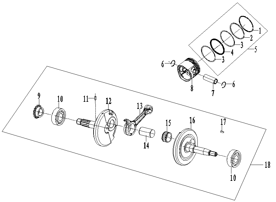 Коленчатый вал, поршни и шатуны 2-х тактного ПЛМ MERCURY 9.9 M TMC Серийный номер от 0N059858 и выше